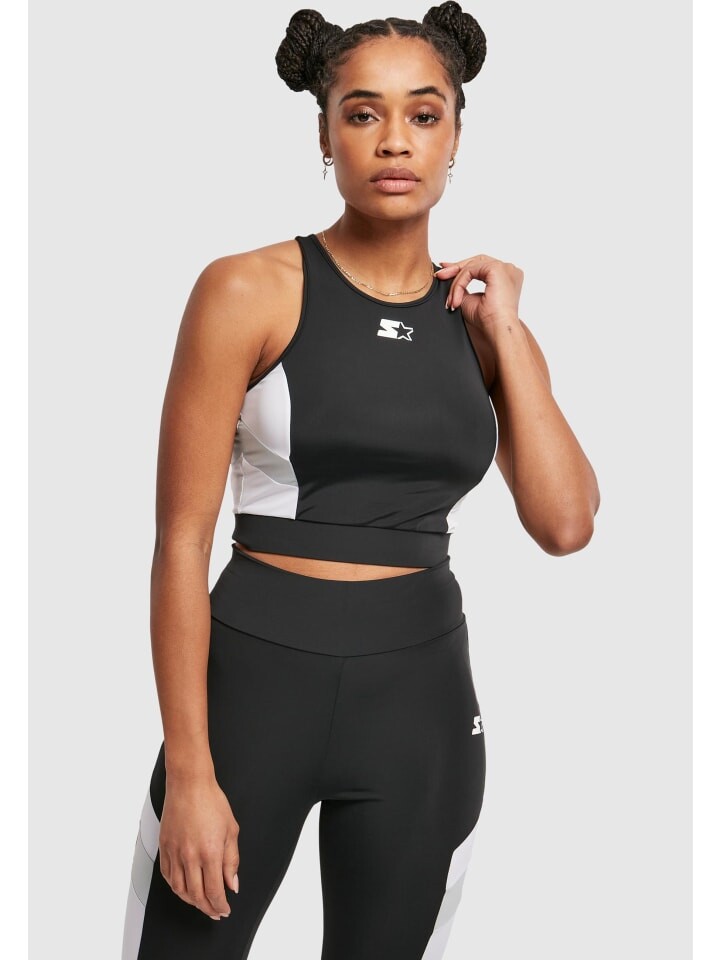 Спортивный женский топ оставляет много места благодаря свободной посадке на спине и предлагает еще большую свободу движений благодаря удобному эластичному трикотажному материалу. Цветные вставки на боковых панелях и два небольших принта с логотипом Starter под круглым вырезом и на шее добавляют стиля. Женский топ имеет сексуальный, короткий крой и укороченный крой.
