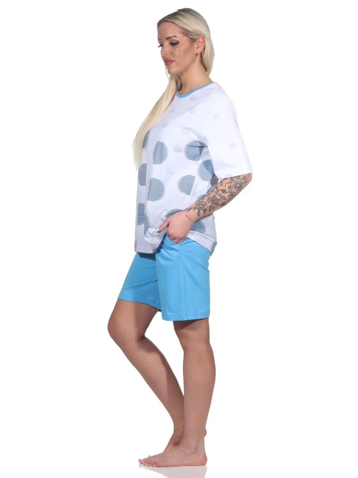 Всегда хорошо одета! Эти короткие женские пижамы с короткими рукавами от Normann имеют удивительно освежающий и модный вид в горошек и сочетают в себе великолепный дизайн, радость цвета и комфорт. Шорты пижамы однотонные, верх пижамы Shorty имеет великолепный летний вид в горошек.