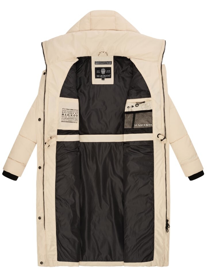 ВИД: Модный женский пуховик с практичными деталями, высоким воротником и большим капюшоном от Marikoo - идеален для холодных осенних и зимних дней!