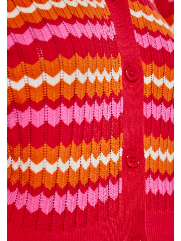 Представляем вам изящный кардиган со стильным V-образным вырезом и сложной структурой в рубчик. Это элегантное изделие имеет застежку на пуговицы спереди и длинные рукава с ребристыми манжетами и подолом, придающими элегантный вид. Выраженные детали рельефной вязки на вырезе, планке с пуговицами, манжетах и подоле придают этой модели, облегающей фигуру, нотку изысканности.