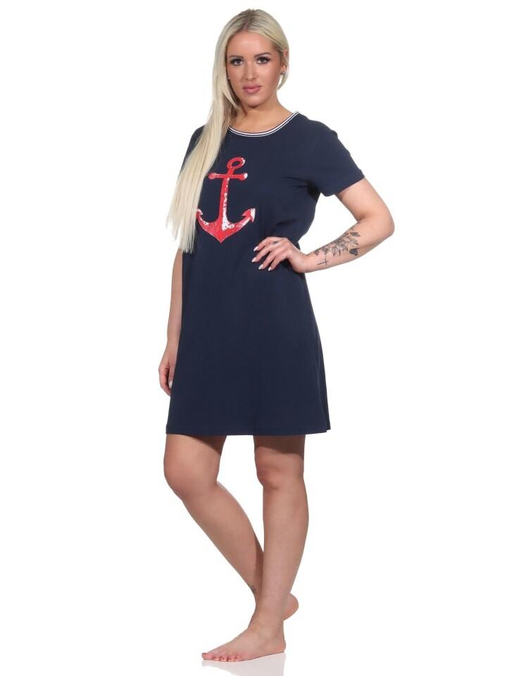 Женская ночная рубашка в морском стиле с короткими рукавами и мотивом якоря - 122 214 10 755