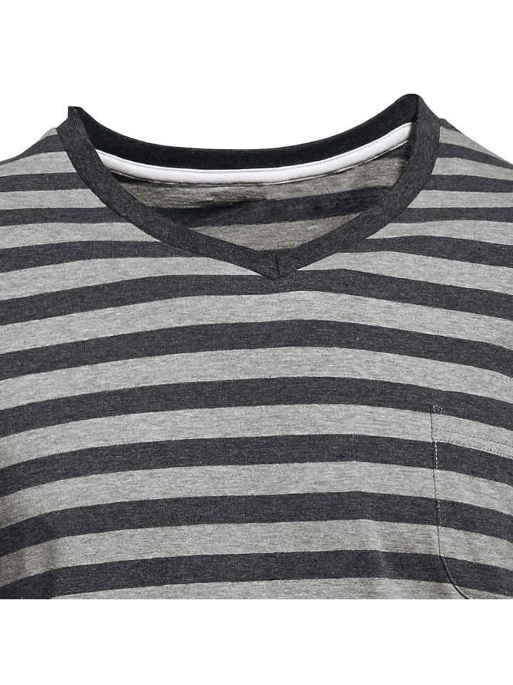 Мужская пижама REDBEST из одинарного джерси. Повседневный, мужественный и очень удобный. Манжеты на рукавах, подоле и штанинах придают несложной ночной одежде спортивный вид. Очень привлекательно смотрится микс меланжа и трикотажных полосок. Длинные брюки с широким притачным эластичным поясом сочетаются с топом с V-образным вырезом и нагрудным карманом. Вы будете рады побаловать себя приятным качеством, это удовольствие для вашей кожи.