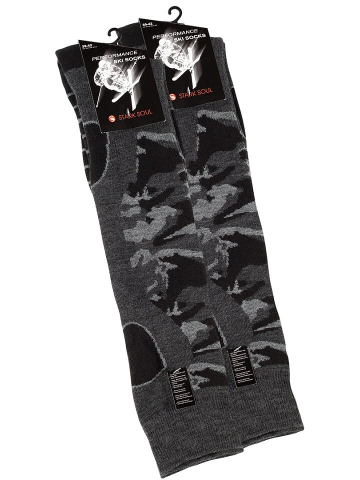 Наденьте приятные лыжные носки от STARK SOUL и отправляйтесь на склон. Классные гольфы впечатляют своей удобной посадкой и дополнительным усилением сильно нагруженных зон ступней и ног. Практичные чулки идеально сидят по фигуре благодаря эластичному материалу и эластичным манжетам. Приятное регулирование тепла и климата. Структура махровой ткани на голени обеспечивает больший комфорт, усилены пятка и носок. Зоны растяжения на лодыжке и подъеме обеспечивают дополнительную поддержку и гарантируют высокий уровень комфорта. Высококачественные материалы для лучших свойств при катании на лыжах, походах по снегу и сноуборде. Материал: 77 % акрил, 21 % полиэстер, 2 % эластан