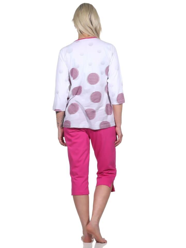 Всегда хорошо одеты! Женская пижама Cpari с короткими рукавами от Normann имеет удивительно освежающий и модный вид в горошек и сочетает в себе великолепный дизайн, радость цвета и комфорт. Брюки-капри длиной 3/4 в пижаме однотонные, верх пижамы-капри-коротышки имеет великолепный летний вид в горошек.