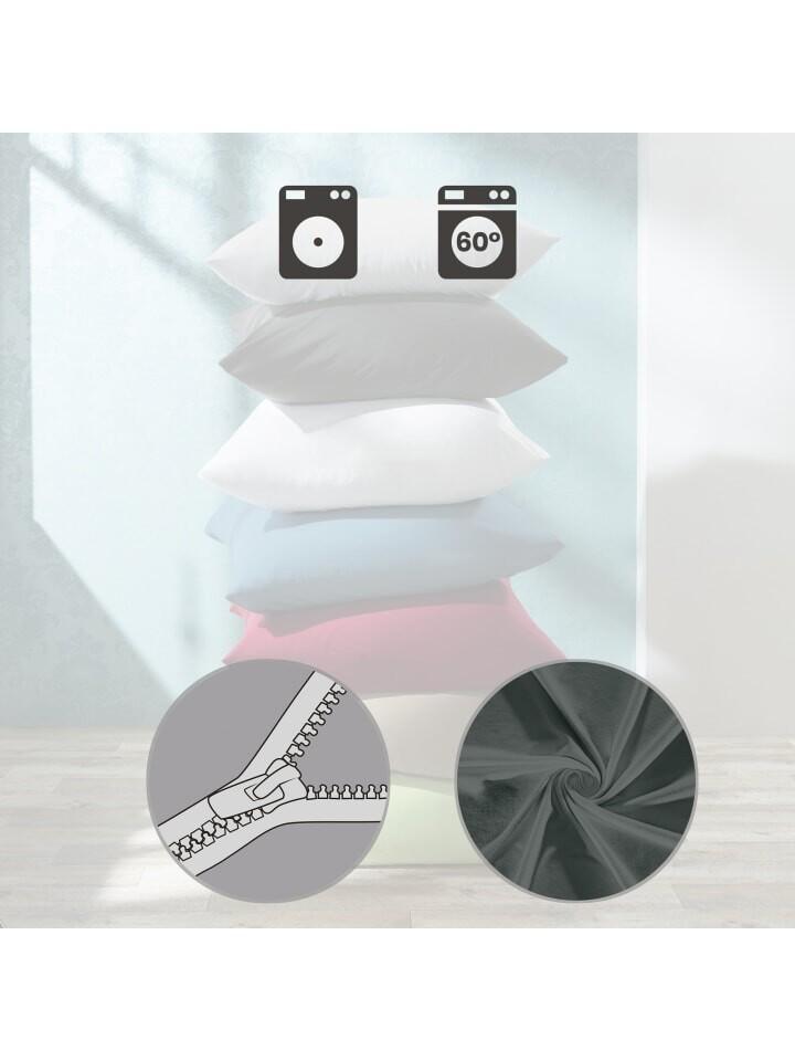 Наволочка Erwin Müller из одинарного джерси «Traunstein». Наволочка уютного цвета легко впишется в обстановку вашего сна. Вас также впечатлит тонкая резьба и деликатное круглогодичное качество. Он особенно мягок на ощупь, мягко течет и приятен вашей коже. Мягкий, слегка эластичный трикотаж не только пропускает воздух и регулирует температуру, но также не гладится и за ним легко ухаживать. С застежкой-молнией для удобного надевания.