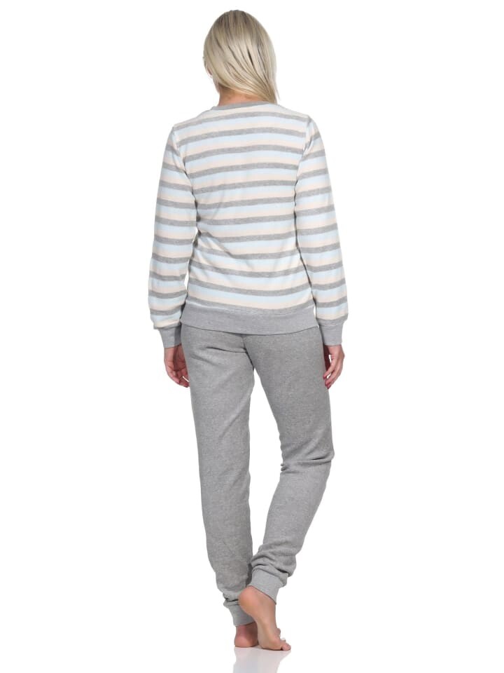 Женская пижама из махровой ткани, с длинными рукавами и манжетами - в полоску - также больших размеров