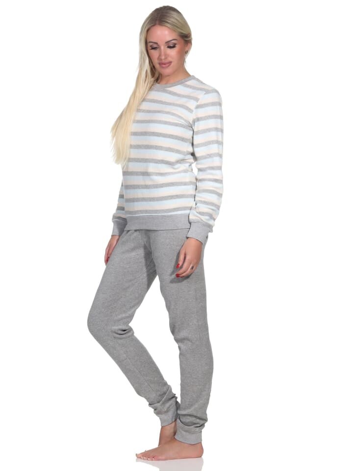 Любите быть уютной, теплой и уютной, когда начинается прохладное время года? Тогда эта элегантная и элегантно выглядящая махровая пижама в красивом полосатом виде, окрашенная в пряжу, станет для вас идеальным выбором, ведь ткань женской махровой пижамы приятная, уютная и теплая, поэтому идеально подходит для холодного времени года.