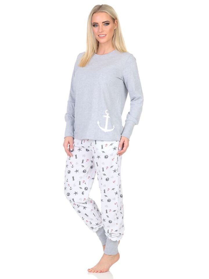 Женская длинная пижама Normann с манжетами в морском стиле - также в размерах оверсайз