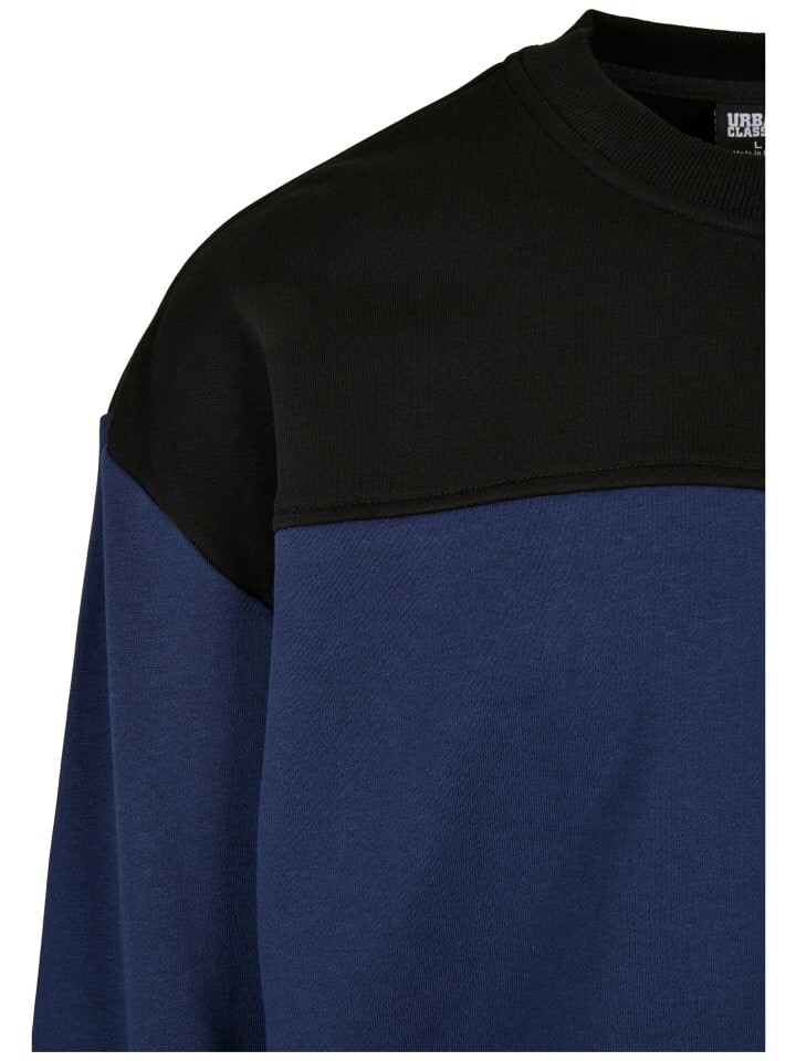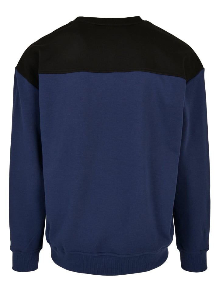 Мужской свитер спортивного кроя подчеркивает фигуру и притягивает взгляд к лицу благодаря черной плечевой части. Свитер изготовлен из прочной, эластичной махровой ткани. Манжеты и подол эластичны и отделаны широкой ребристой тканью. Нашивка с логотипом Urban Classics находится внизу слева на подоле.