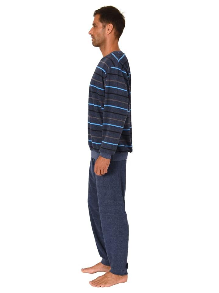 Мужская махровая пижама с длинными рукавами и манжетами в полоску - также в размерах оверсайз
