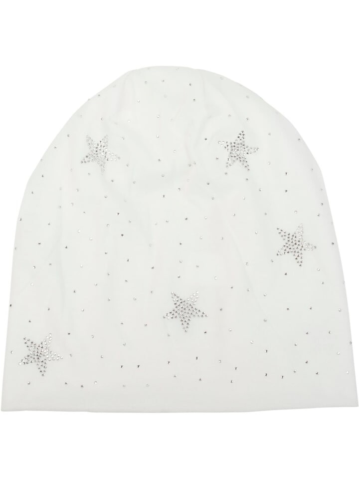 Легкая шапка-бини styleBREAKER со звездами из стразов и драгоценными камнями по всей поверхности.