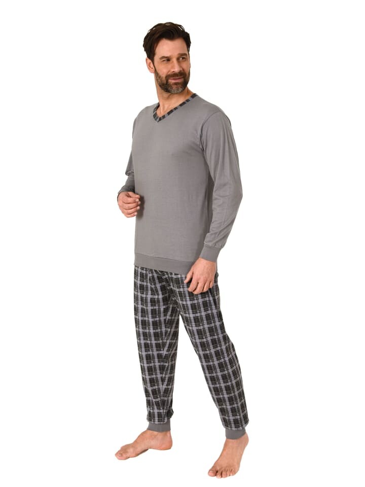 Мужская пижама Normann с длинными рукавами и манжетами и пижамные штаны из клетчатого джерси