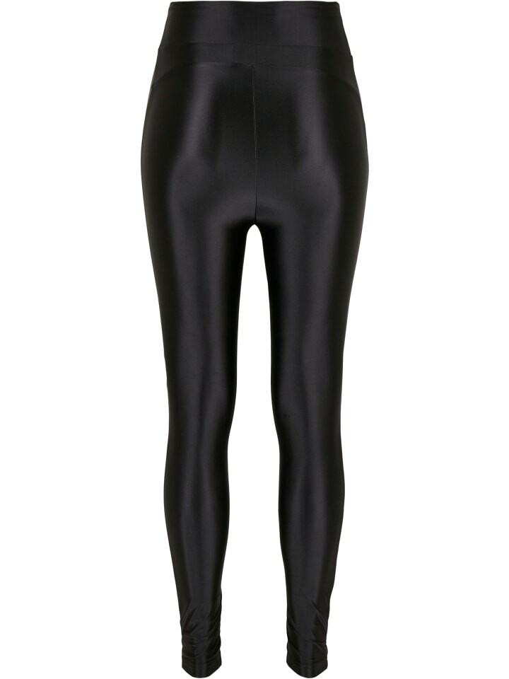 Женские леггинсы имеют прикрепленный очень высокий эластичный пояс и кокетку по низу. Мягко блестящий материал впечатляет элегантным металлическим видом и небрежно привлекает внимание. Классическая, плотно прилегающая посадка.