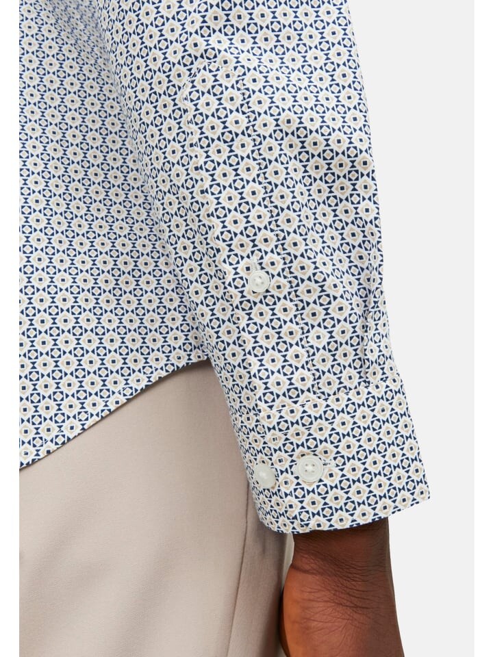 Погрузитесь в мир элегантности с этой облегающей мужской рубашкой с длинными рукавами. Приталенный крой придает модели современный и привлекательный силуэт. Классический воротник Kent и планка с пуговицами создают неподвластный времени образ. Регулируемые манжеты с двумя пуговицами обеспечивают индивидуальную посадку и изысканность. Благодаря изогнутому краю оно идеально подходит для повседневных или официальных мероприятий. Узорчатый дизайн придает рубашке особый шарм и выделяет вас стильно. Наслаждайтесь высоким уровнем комфорта и первоклассным качеством изготовления этого вневременного изделия. Идеально подходит для мужчин, которые ценят стиль и комфорт, независимо от случая.