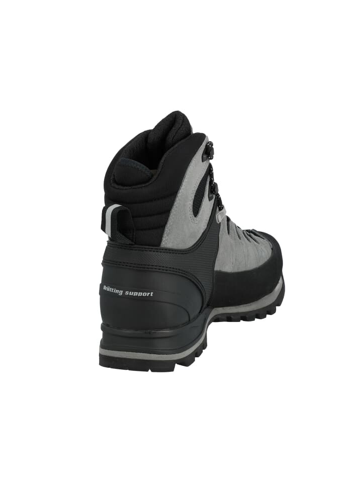 Функциональные походные ботинки Mount Tasman от Brütting из прочной замши; стабилизирующие синтетические обрезки; классическая шнуровка; водонепроницаемая и дышащая климатическая мембрана Comfortex; Текстильный салон и сменная текстильная стелька Ortholite; стабильная и нескользящая подошва Vibram, а также удобная набивка голенища и язычка.