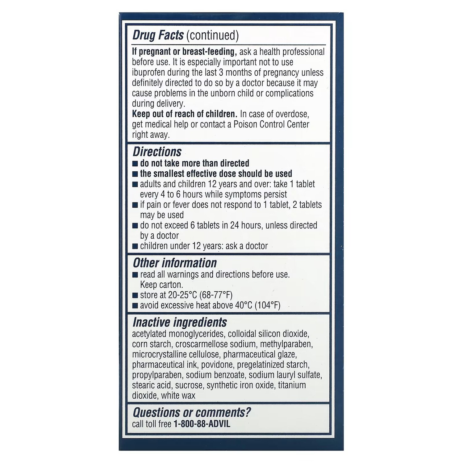Перед применением во время беременности или кормления грудью следует проконсультироваться с медицинским работником. Особенно важно не использовать ибупрофен в течение последних 3 месяцев беременности, если это не предписано врачом, поскольку это может вызвать проблемы у будущего ребенка или осложнения во время родов. Хранить в недоступном для детей месте. В случае передозировки немедленно обратитесь за медицинской помощью или свяжитесь с токсикологическим центром.