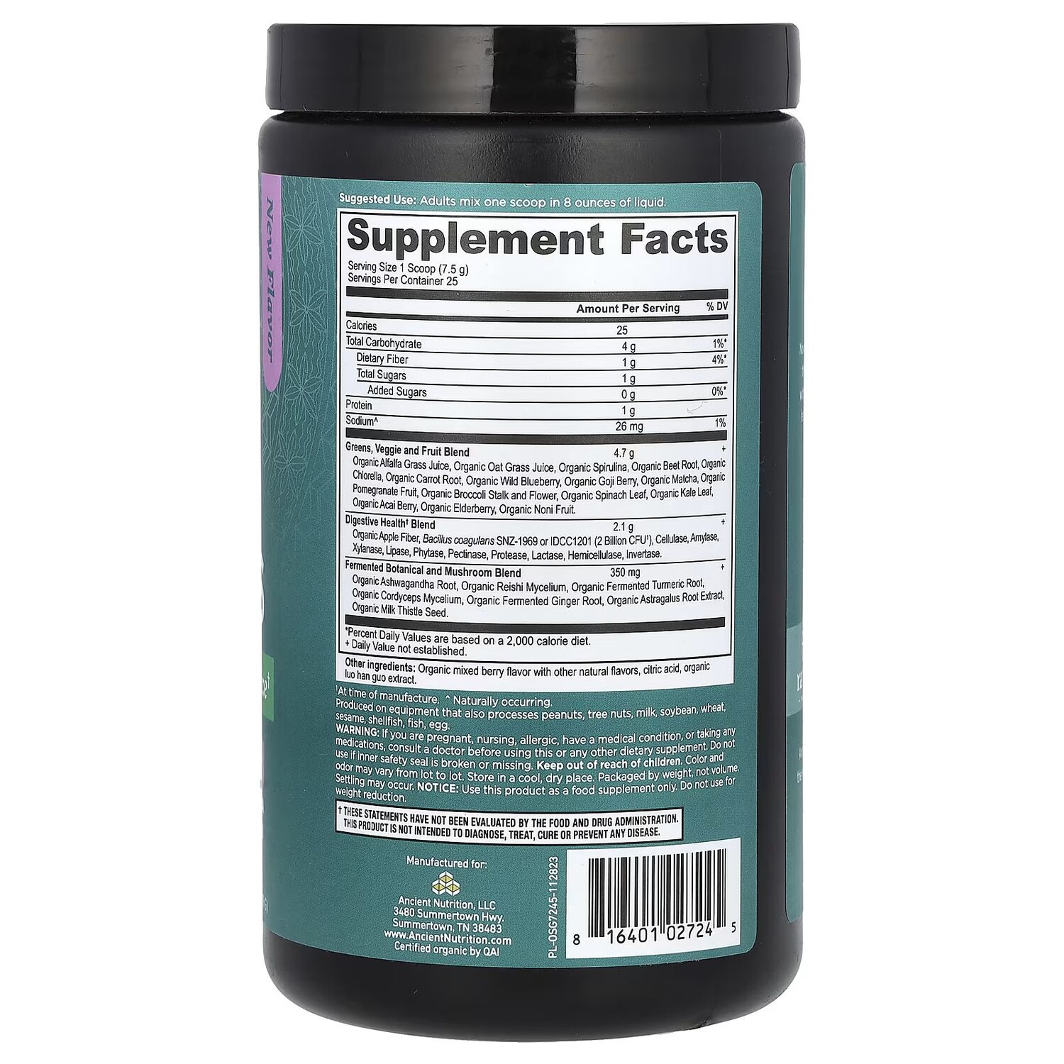 Этот восхитительный суперпродукт с непревзойденным вкусом и текстурой содержит подщелачивающую зелень, фрукты, богатые антиоксидантами, ферментированные травы, адаптогенные грибы, пробиотики и ферменты.