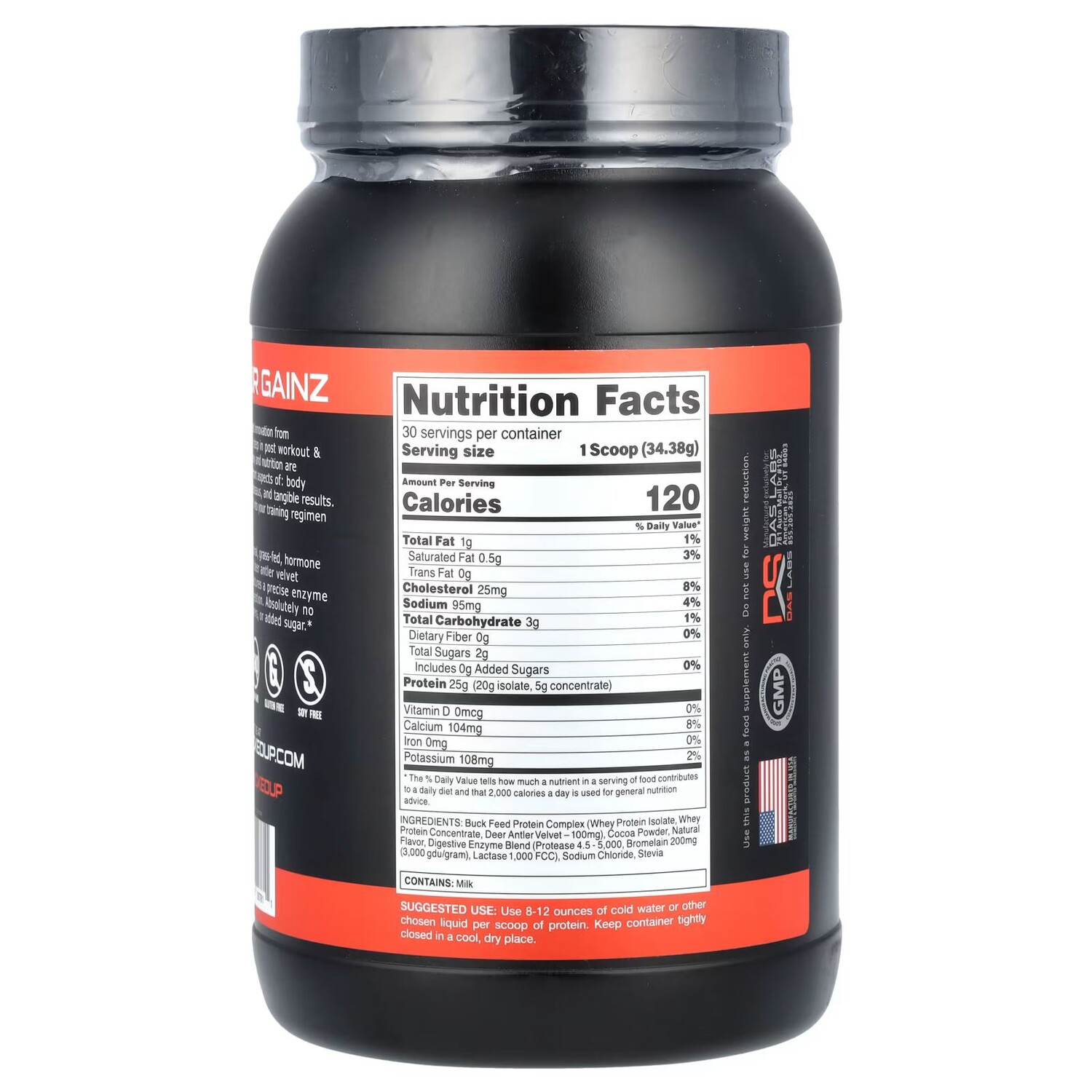 BUCK FEED содержит 25 г полностью натурального протеина без гормонов травяного откорма и 100 мг экстракта оленьих рогов. Он содержит точную смесь ферментов для усвоения и пищеварения. Абсолютно без искусственных красителей, подсластителей и добавленного сахара.