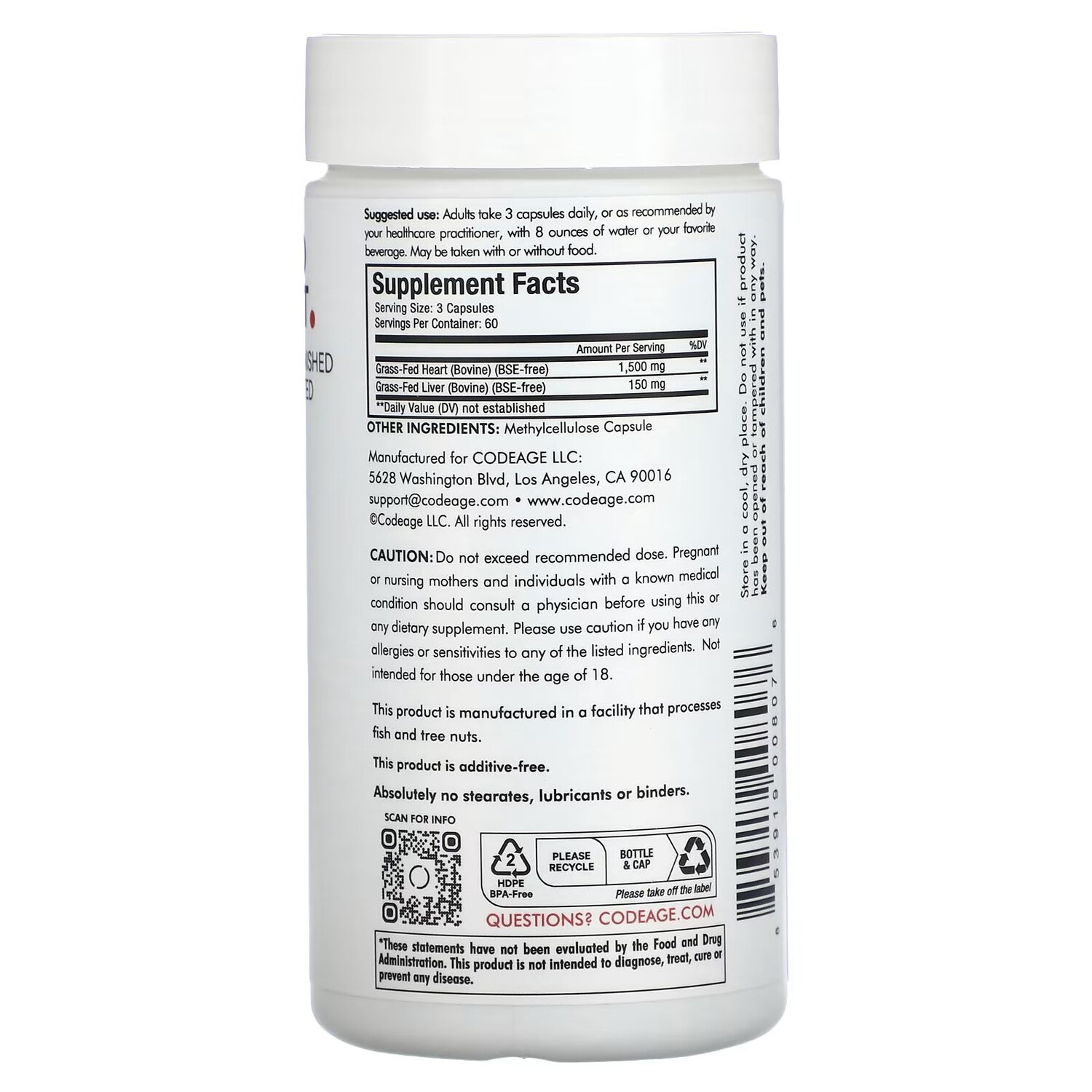 Добавка Codeage Grass-Fed Beef Heart изготовлена из высококачественного говяжьего сердца и печени от животных травяного и полного травяного откорма, выращенных на пастбищах. Эта добавка из суперфудов является сублимированной, не обезжиренной и высушенной, чтобы помочь сохранить витамины и питательные вещества, обычно содержащиеся в бычьем сердце, такие как коэнзим Q10, B12, железо и селен, помогающие укрепить здоровье сердца.