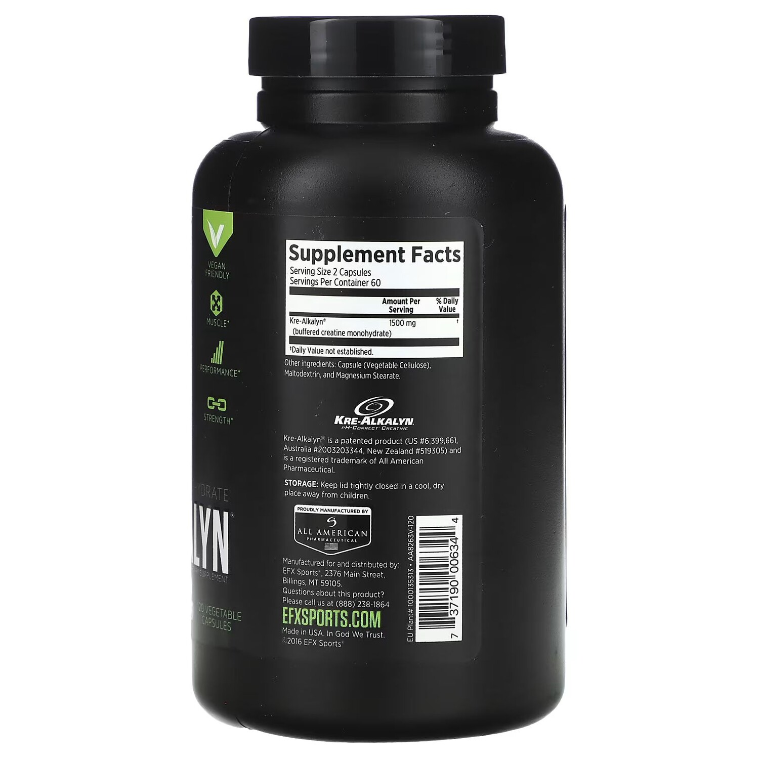 Kre-Alkalyn EFX — это единственный на рынке моногидрат креатина с кислотностью рН 12, потому что его молекулы синтезируются посредством буферизации агентов с применением защищенного патентом (№ 6399661) производственного процесса, обеспечивающего необходимую кислотность.