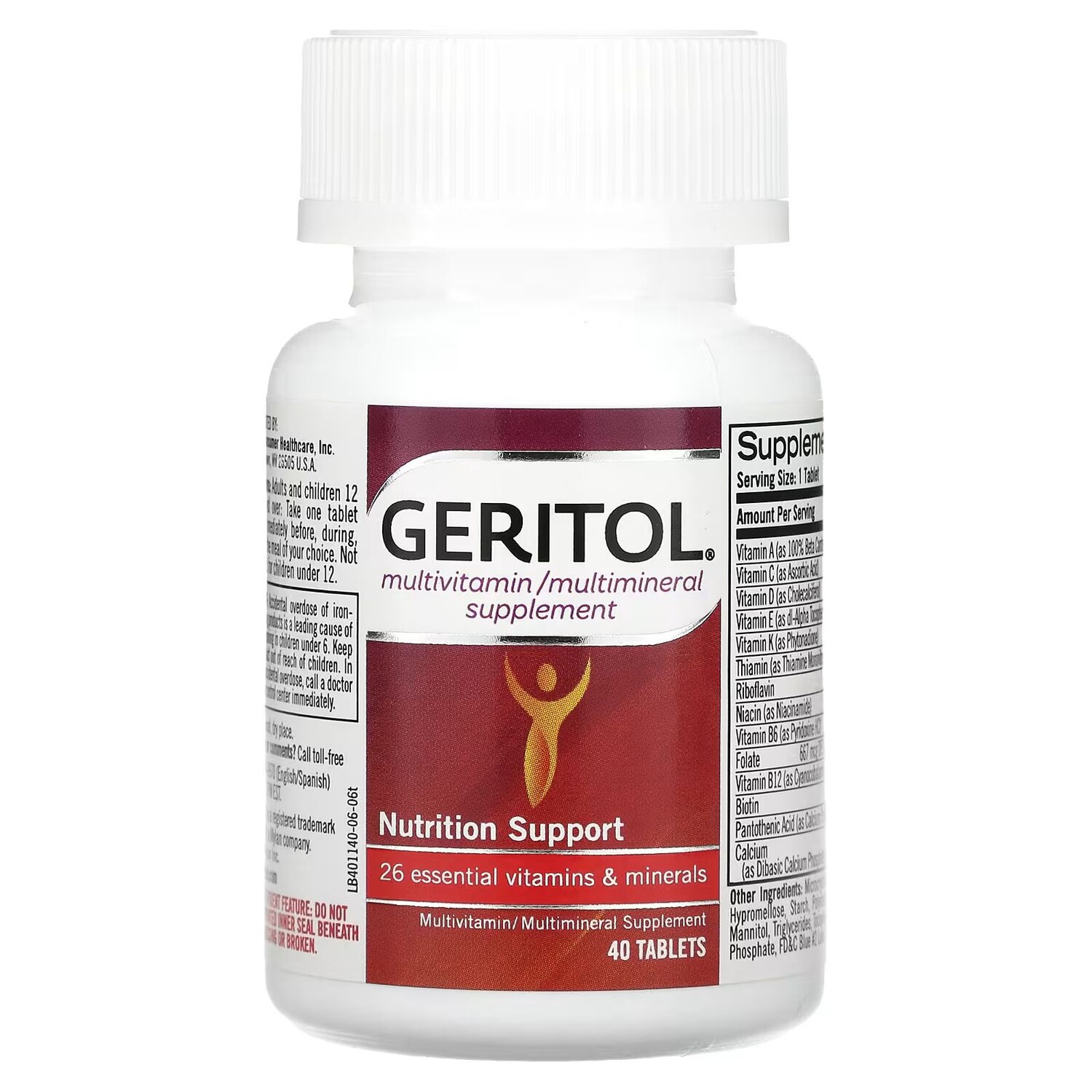 Geritol содержит двенадцать незаменимых витаминов и минералов в количестве не менее 100% от рекомендуемой суточной нормы (см. раздел «Пищевая ценность»).