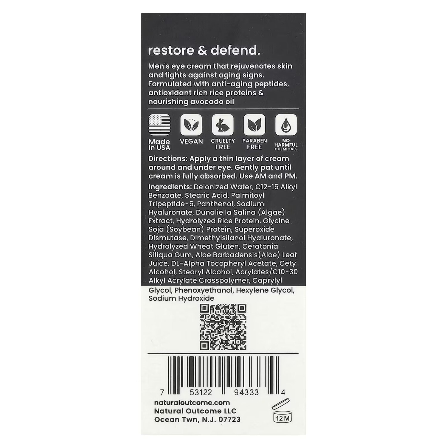 Крем для кожи вокруг глаз для мужчин, который омолаживает кожу и борется с признаками старения. Содержит антивозрастные пептиды, рисовые протеины, богатые антиоксидантами, и питательное масло авокадо.
