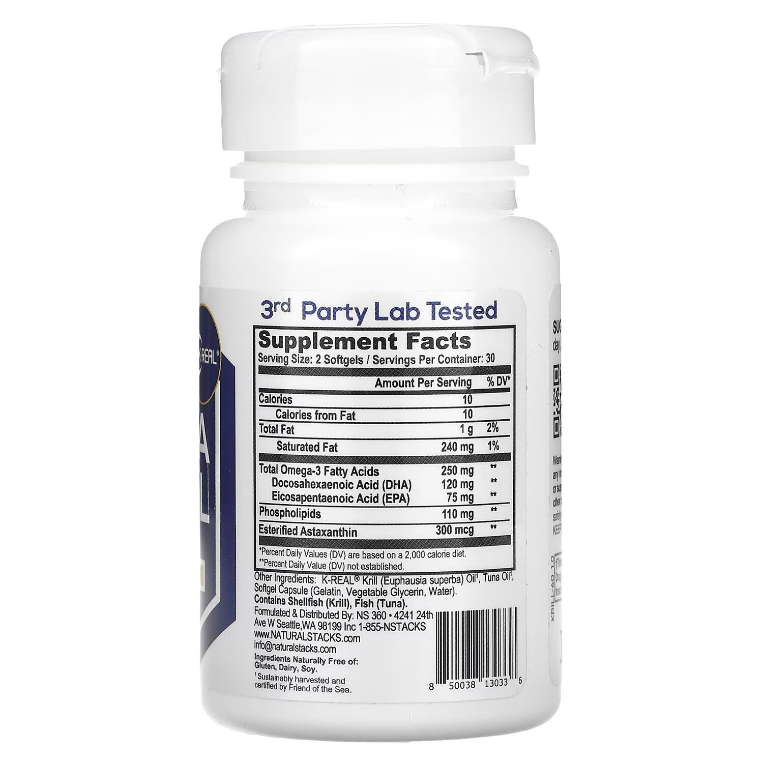 Масло криля (Euphausia superba) K-Real1, тунцовое масло1, капсула (желатин, растительный глицерин, вода).