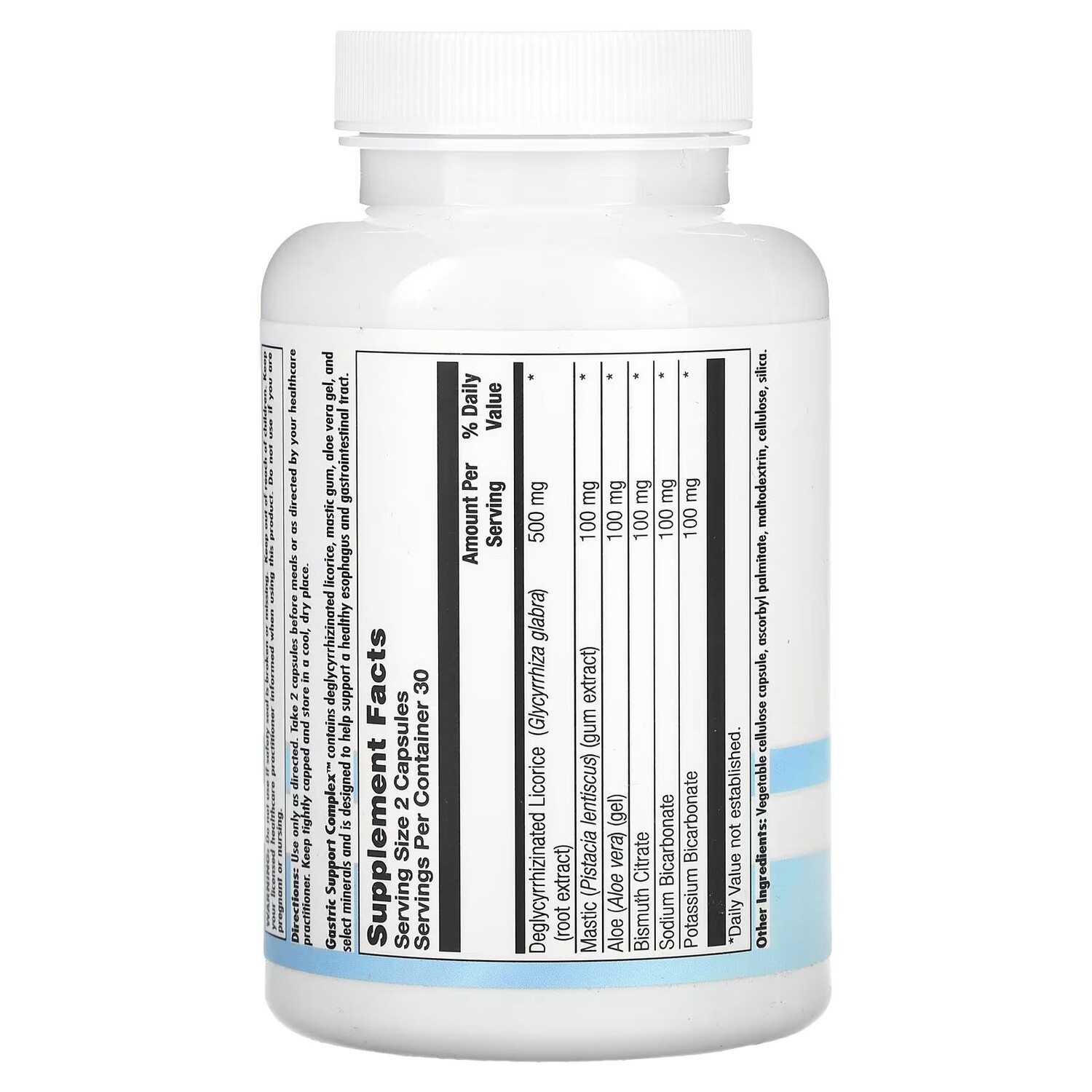 Комплекс для поддержки желудка Gatric Support Complex содержит деглицирризинированную солодку, мастиковую смолу, гель алоэ вера и избранные минералы. Он разработан для поддержки здоровья пищевода и желудочно-кишечного тракта.