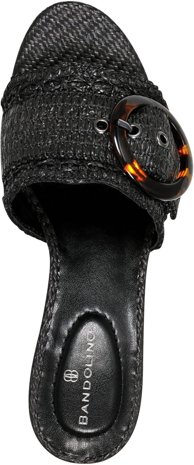 Элегантные босоножки Bandolino Anni на блочном каблуке, связанные крючком из рафии, придают образу неповторимый стиль. Они оснащены модной крупной пряжкой и красивой деталью в виде гребешка. Эти слипоны миндалевидного силуэта с открытым носком имеют текстильный верх, подкладку из искусственного полиуретана, стельку из пеноматериала и подошву из синтетического каучука.