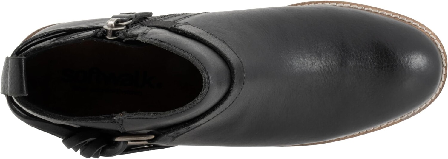 Завершите свой образ стильными ботинками до щиколотки SoftWalk Reade с орнаментом в виде бокового круга и бахромой, которые придадут вашей прогулке изюминку. Мягкая съемная стелька с супинатором обеспечивает повседневную посадку.