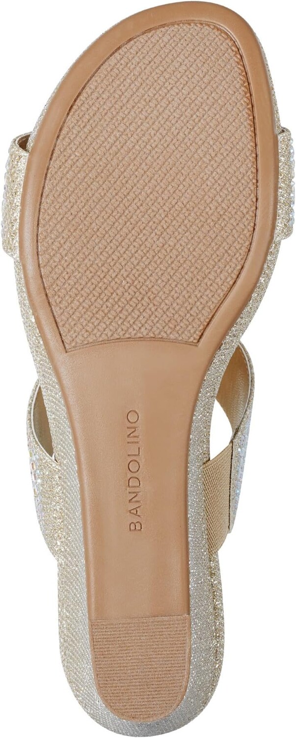 Приготовьтесь к бесконечному веселью с Bandolino Iluvit. Эти босоножки без шнуровки с верхом из полиуретана, искусственной подкладкой и стелькой из пеноматериала имеют каблук-танкетку, открытый закругленный носок, двойной ремешок, инкрустированный кристаллами на союзке, и фирменную деталь на стельке.