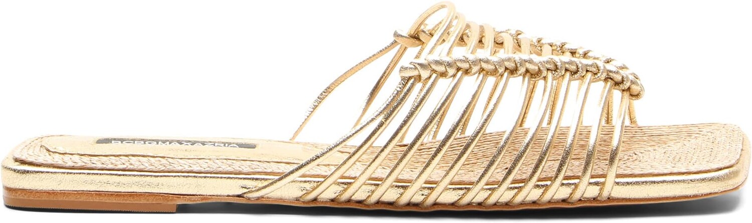 Сандалии на плоской подошве с кожаным верхом с ремешками и завернутыми ремешками.