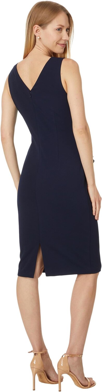 Роскошное платье Betsy & AdamShort из крепа с рюшами и цветочным принтом Scuba с рюшами придает эффектный вид. Овальный вырез, конструкция без рукавов, деталь с V-образным вырезом на спине и силуэт-футляр.