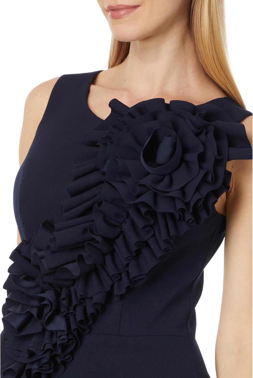 Платье Betsy & Adam Short scuba crepe ruffle flower, темно-синий