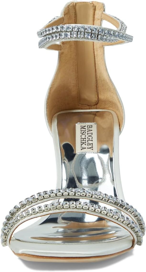 Сандалии Badgley Mischka Lillie с мерцающими ремешками, украшенными кристаллами на пальцах ног и вокруг щиколотки, идеально подходят для эффектного образа. Кожаный верх имеет застежку-молнию сзади для удобства ношения. Шикарные и удобные, эти сандалии с двумя ремешками оснащены искусственной стелькой и дышащей кожаной подкладкой, что делает их удобными для ношения в течение долгих часов. Сделайте эффектный вход на любую вечеринку или мероприятие, надев эти хрустальные сандалии.