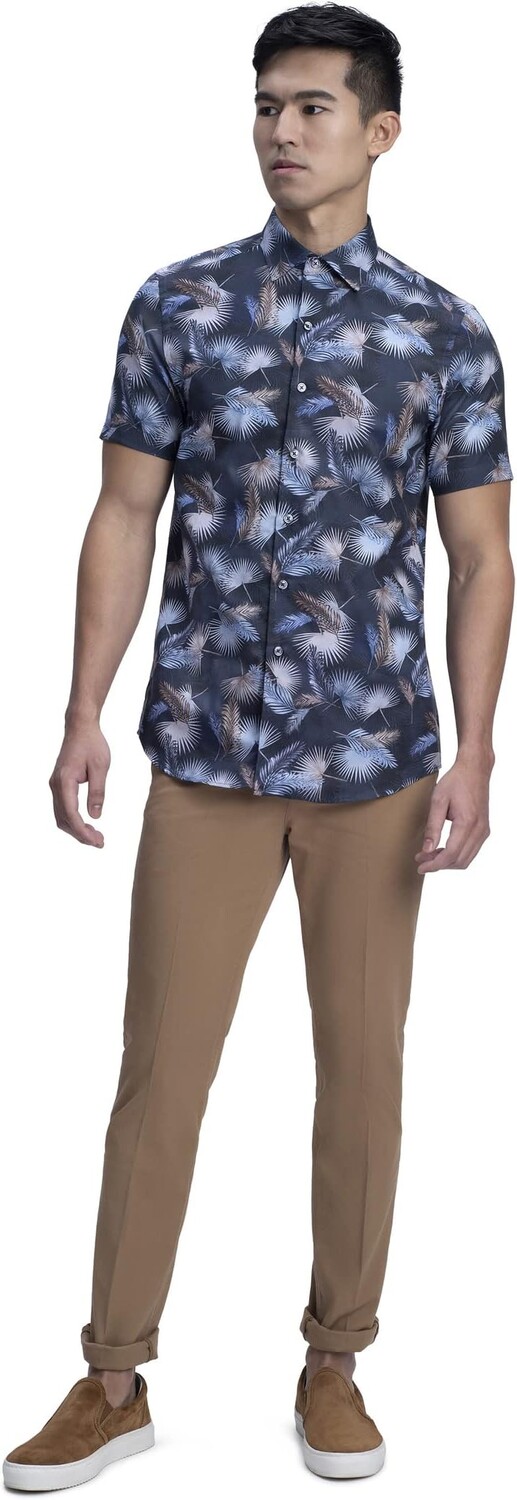 Выглядите супер-стильно в рубашке с коротким рукавом BUGATCHI Orson с ромбовидным принтом.