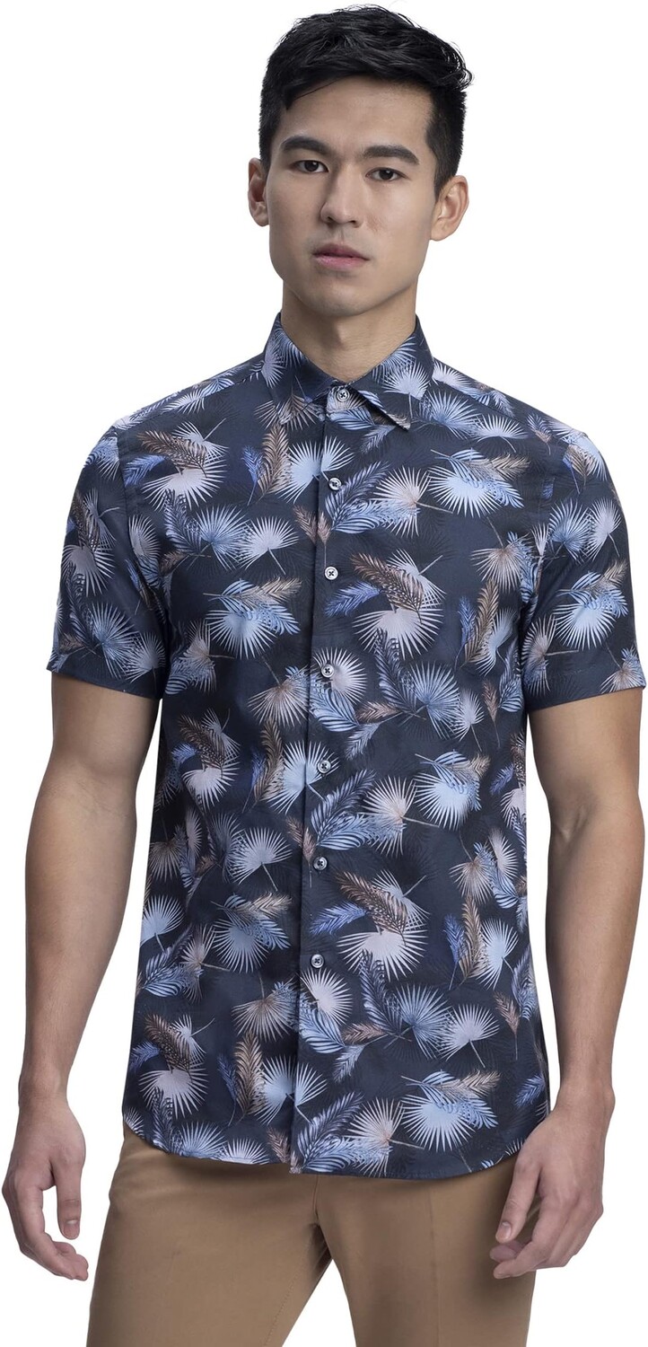 Рубашка BUGATCHI Orson Diamond Print Short Sleeve Shirt, цвет Midnight 8 675₽