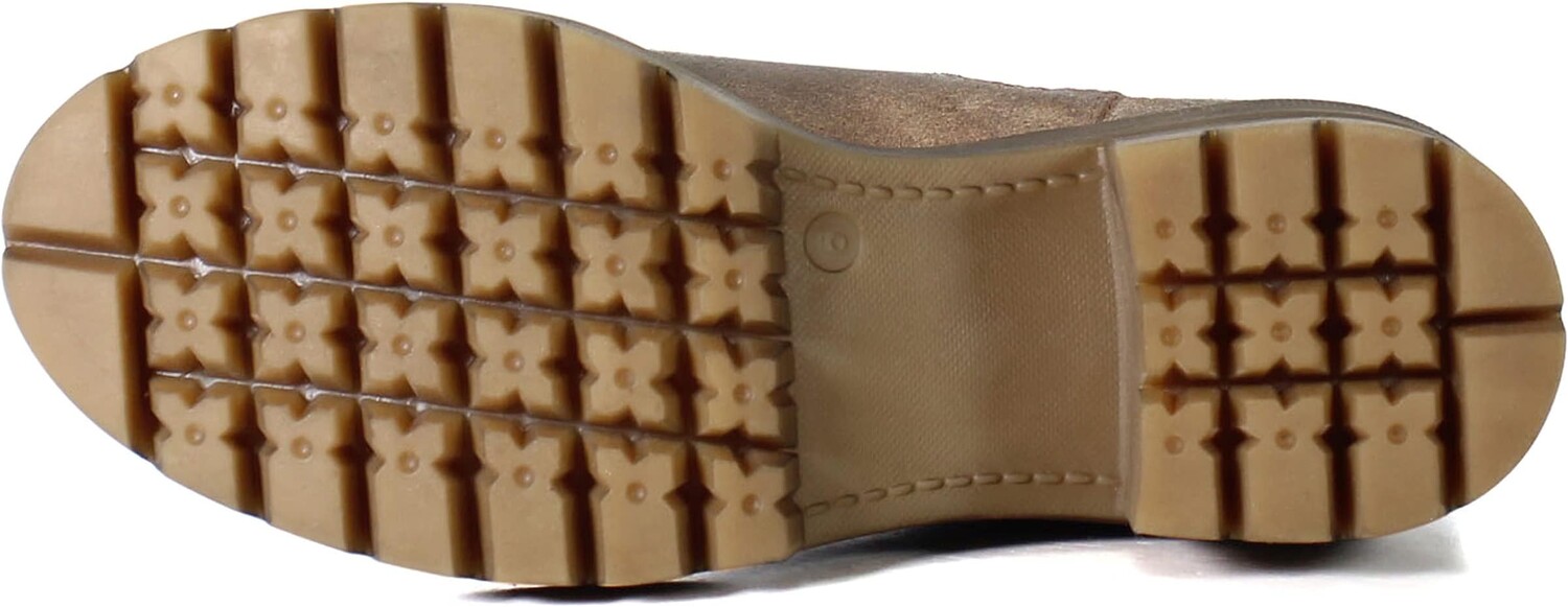 Толстый блочный каблук с рифленой нижней частью.