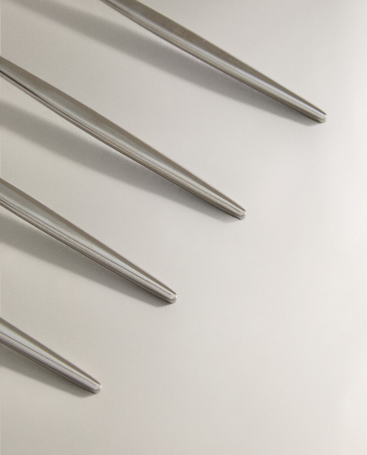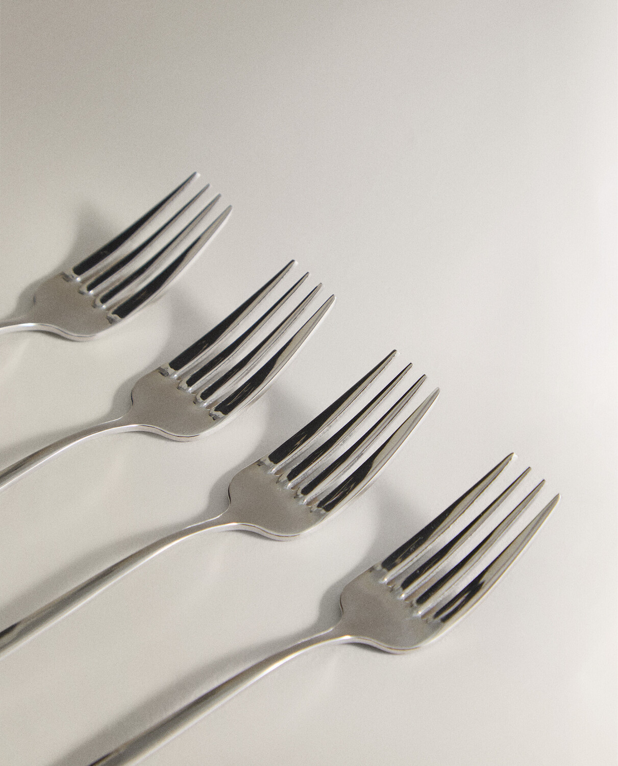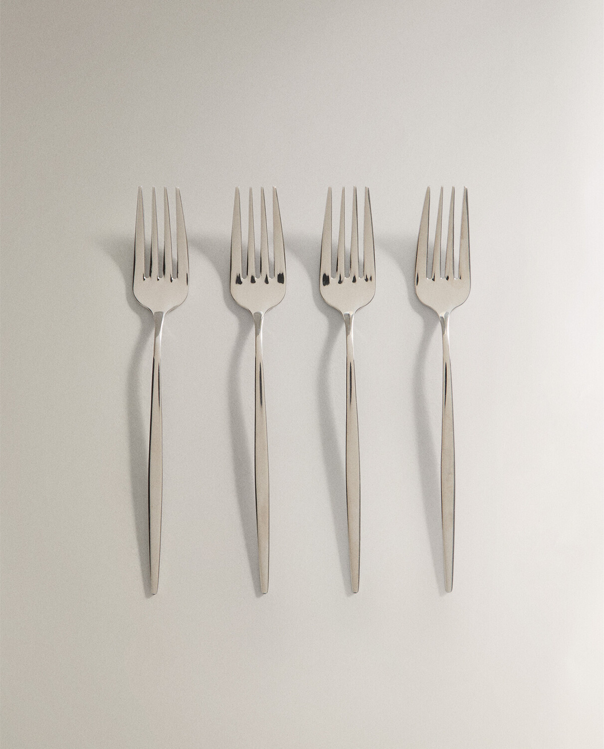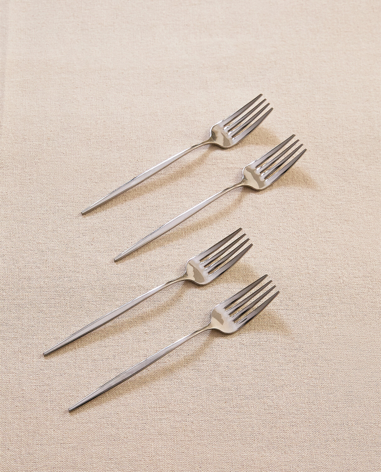 Блестящие вилки для бранча из нержавеющей стали с тонкими ручками.