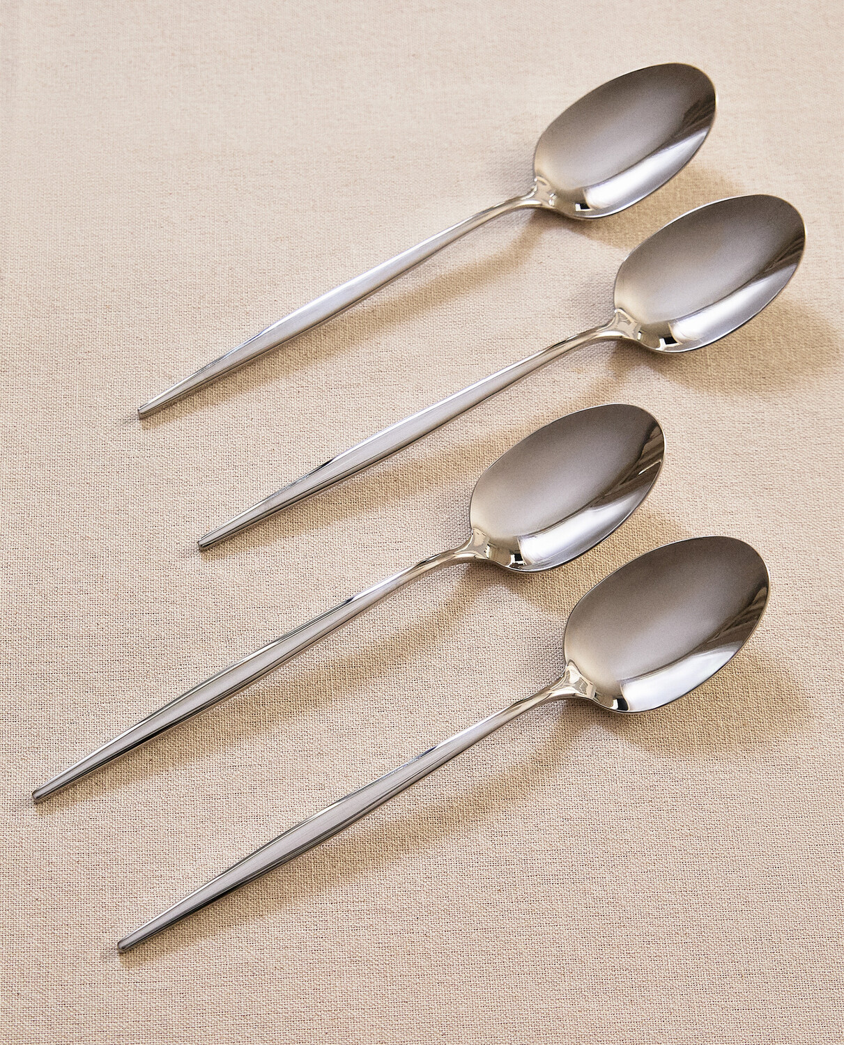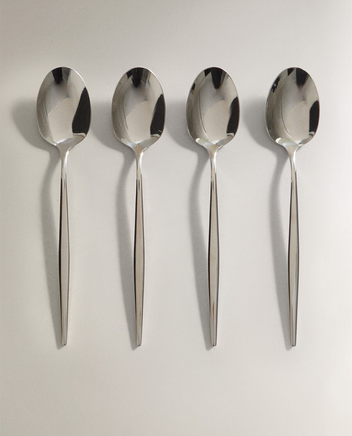 Столовые ложки из блестящей нержавеющей стали с тонкими ручками.
