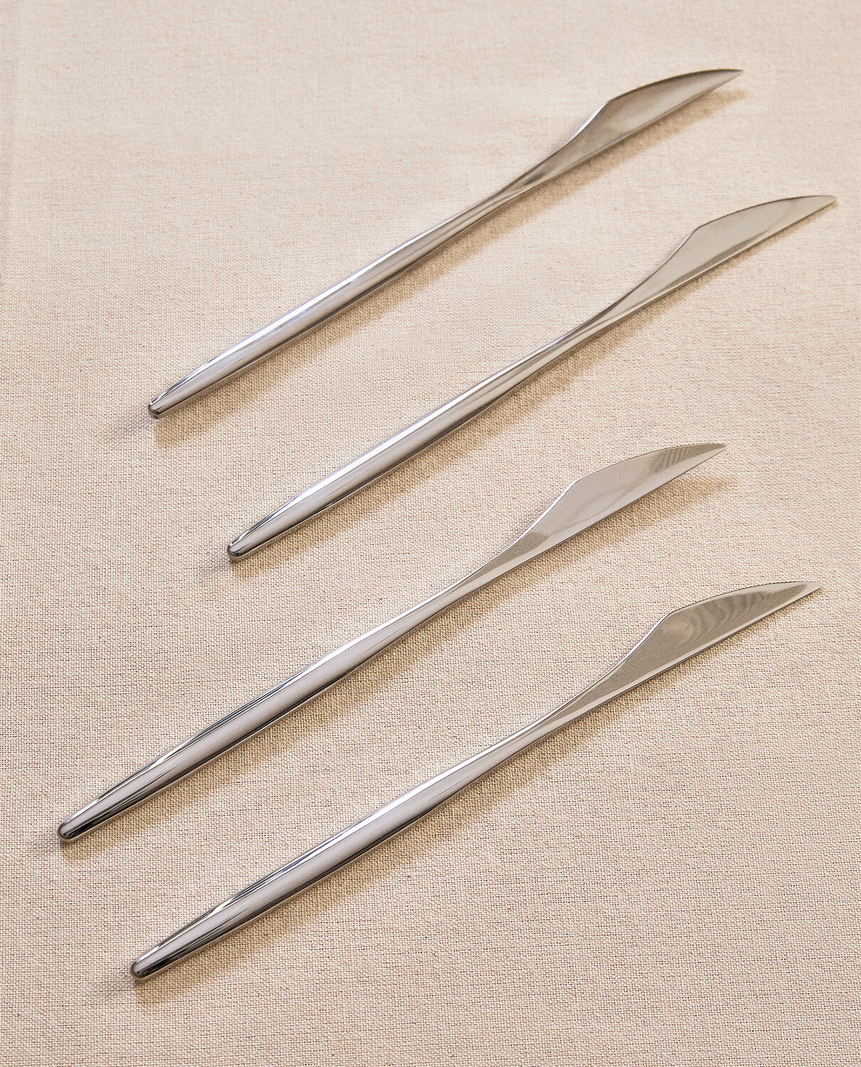 Блестящие ножи из нержавеющей стали с тонкими ручками.