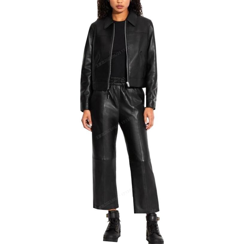 COACH Женская кожаная куртка, цвет Black