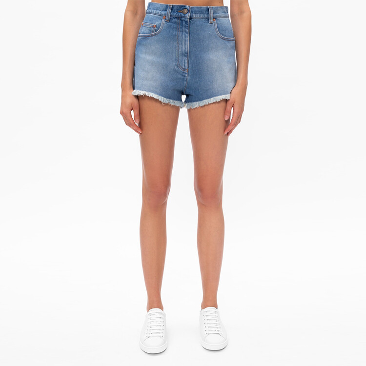 Шорты джинсовые женские Gucci с торчащими нитками, синий 21 350₽