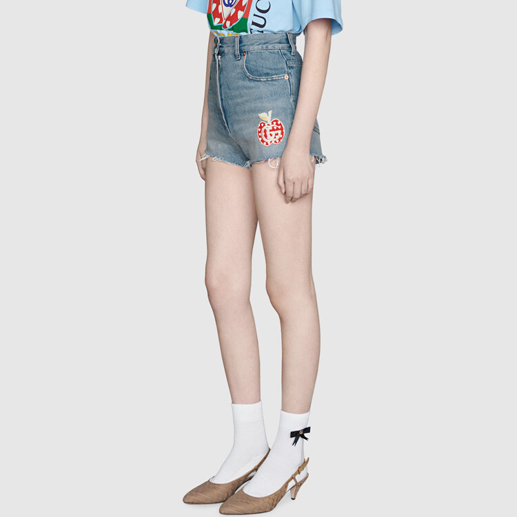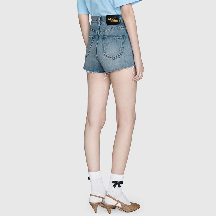 Шорты джинсовые женские Gucci с нашивкой, синий