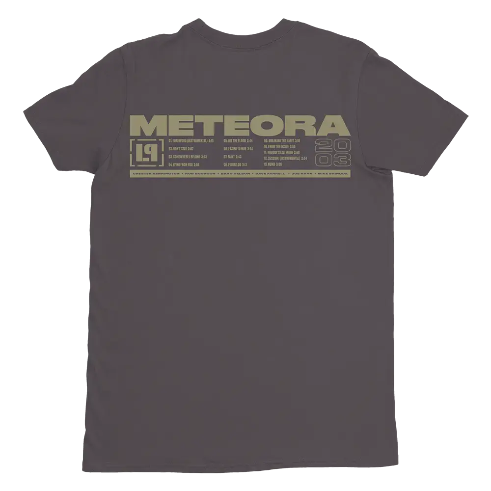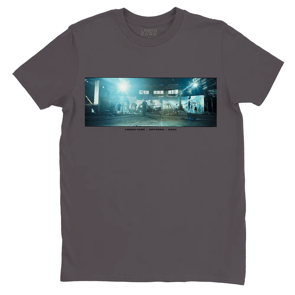 Угольная футболка с фотографией незаконченной работы над альбомом Meteora. В честь 16-летия студийного альбома Linkin Park «Meteora» мы создали несколько новых предметов с изображением обложки альбома.