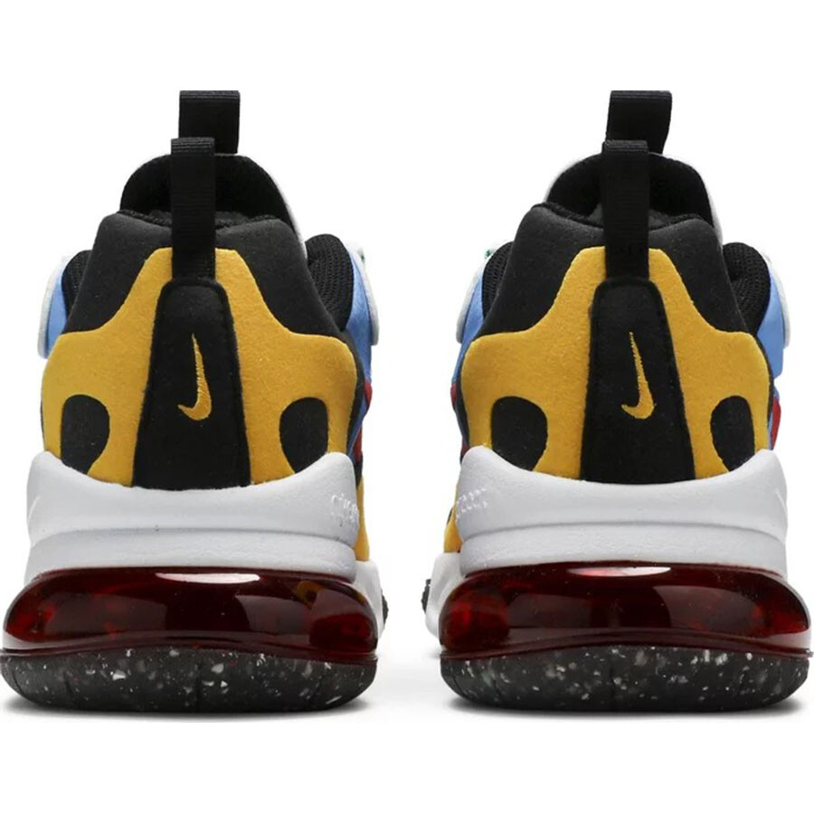 Детские кроссовки Nike Air Max 270 React — отличный вариант для образа в спортивном стиле. Специальные желобки в подошве для гибкости. Эластичная внутренняя часть для плотной посадки. Верх из сетки хорошо пропускает воздух. Большая вставка Max Air в области пятки для амортизации. Резиновая подметка для надежного сцепления.