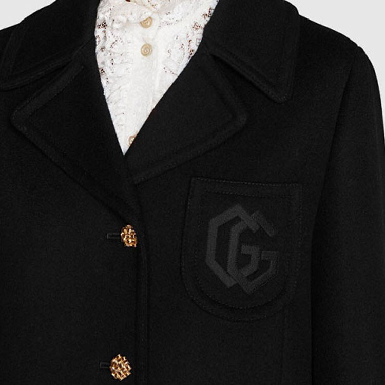 Пальто женское Gucci Double G Embroidery, черный 224 715₽