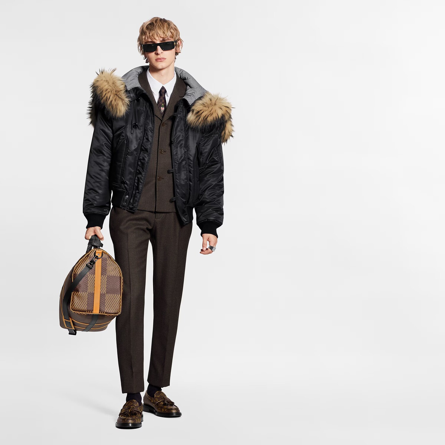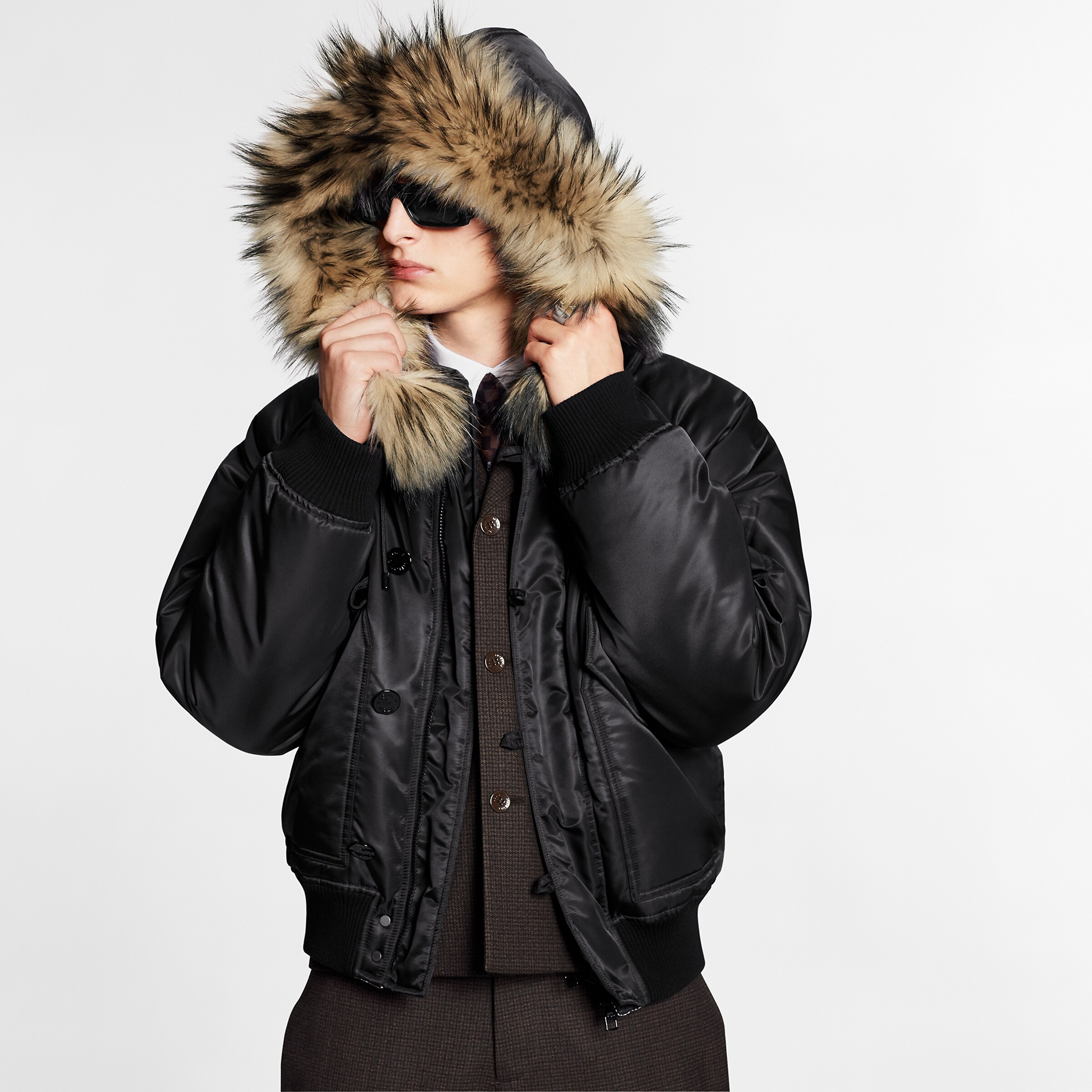 Классический бомбер — результат творческого сотрудничества Дома Louis Vuitton и знаменитого японского дизайнера Ниго. Утеплённая модель стандартной посадки дополнена практичным съёмным капюшоном с отделкой из меха енота. Подкладка с миниатюрной интерпретацией узора Damier, графичная вышивка и подпись LV Made завершают актуальный дизайн.