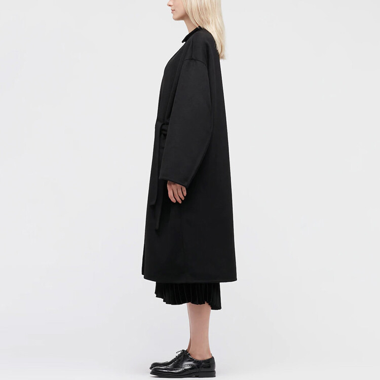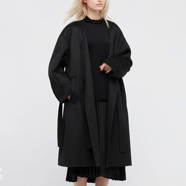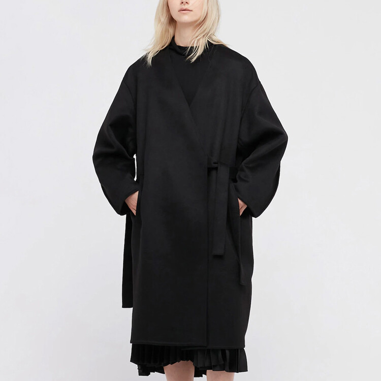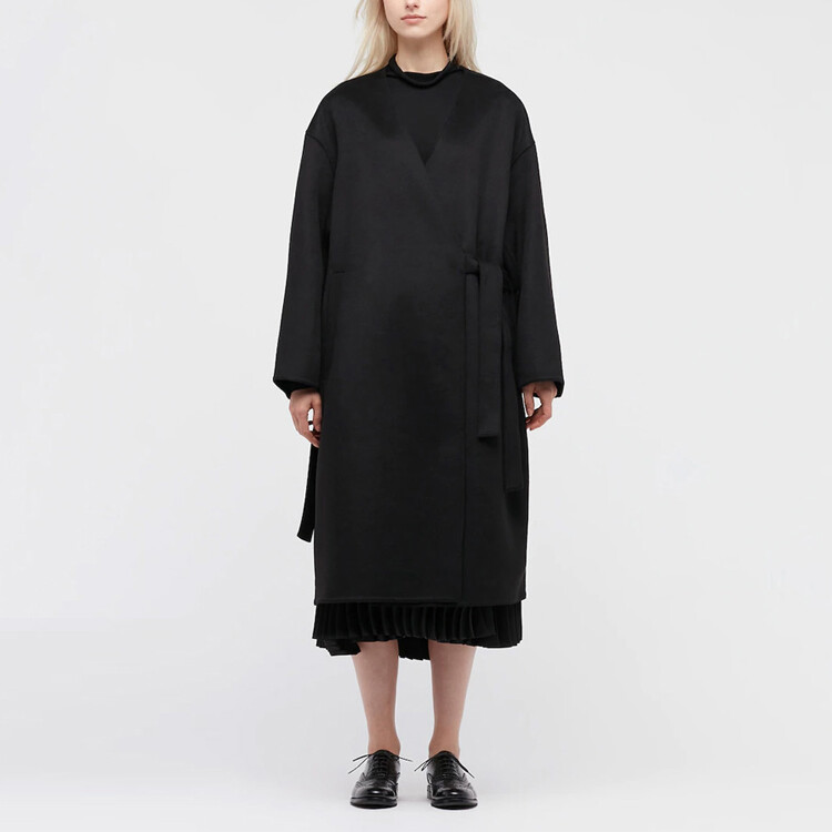 Двустороннее пальто, которое стилизовано как платье. Ткань из смесовой шерсти с роскошным видом. Рукава Dolman сзади позволяют легко двигаться. Унисекс дизайн с ремнем с обеих сторон, так что он сочетается либо с левой, либо с правой стороной. Ремень может быть стилизован по-разному.