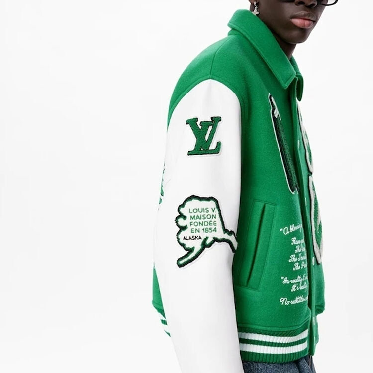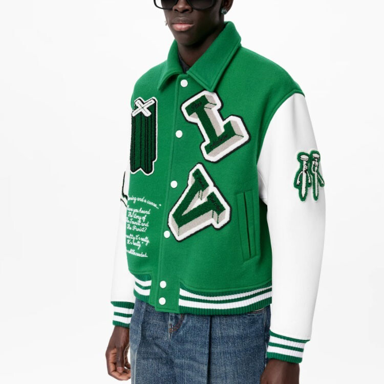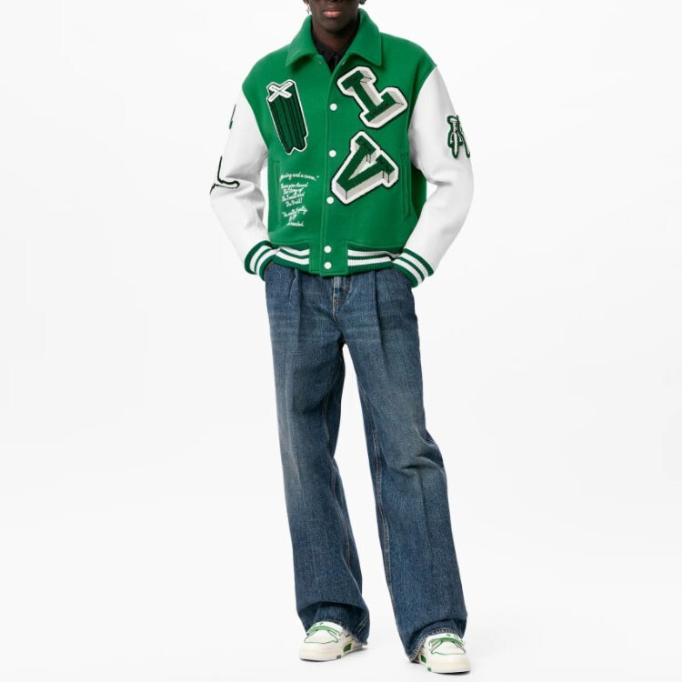 Куртка-джерси мужская Louis Vuitton Varsity Leather, зеленый / белый 514 991₽